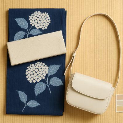 また、暖色系の浴衣なら明るい色のバッグでフェミニンな印象に、寒色系なら白や黒のバッグで涼しげかつモダンな印象に仕上げる工夫もできます。浴衣の場合は帯の柄とバッグの色を完全に合わせなくても構いませんが、統一感をもたせることでおかしな印象を防げます。