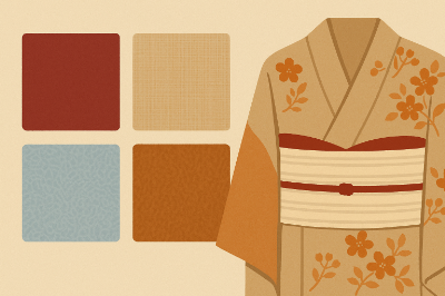 色は着物の雰囲気に調和させるのが基本で、着物の地色や柄に含まれる色味から淡い同系色を選ぶとまとまりが生まれます。パステル調やクリーム色など優しい色合いのショールは、着物の華やかさを引き立てつつさりげなく馴染みます。